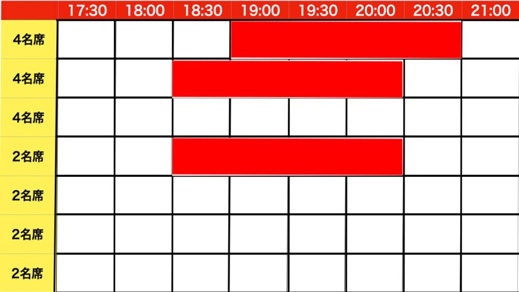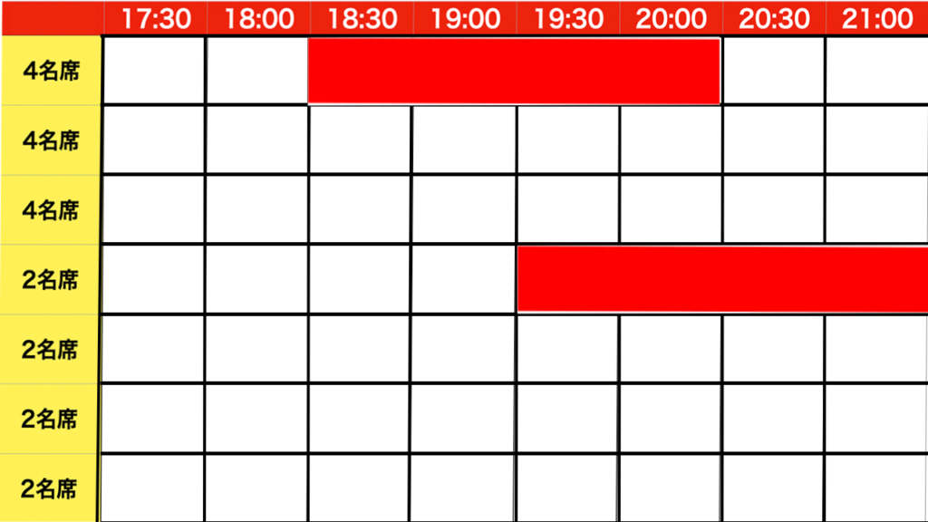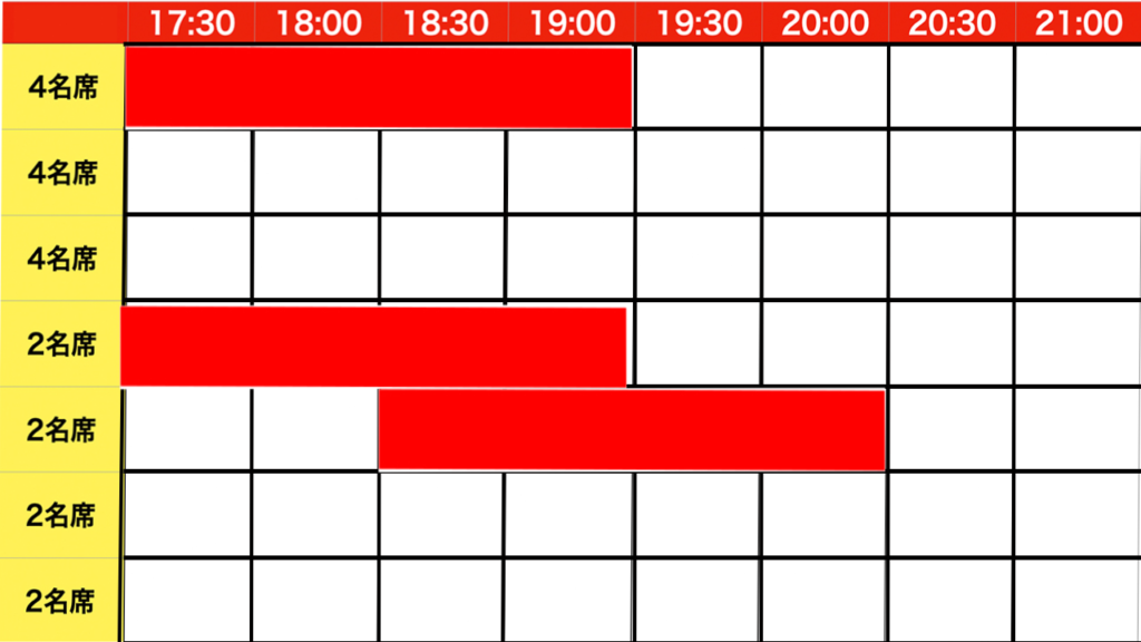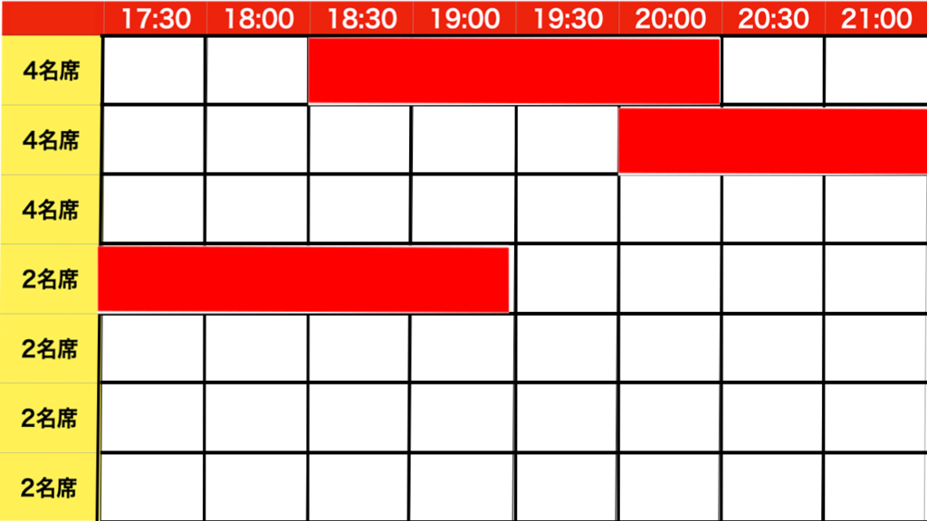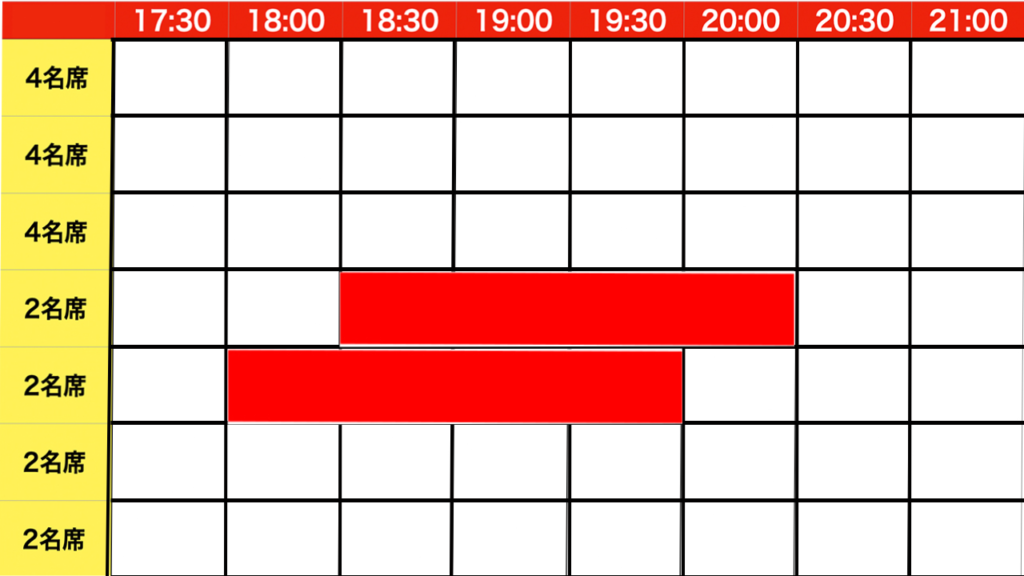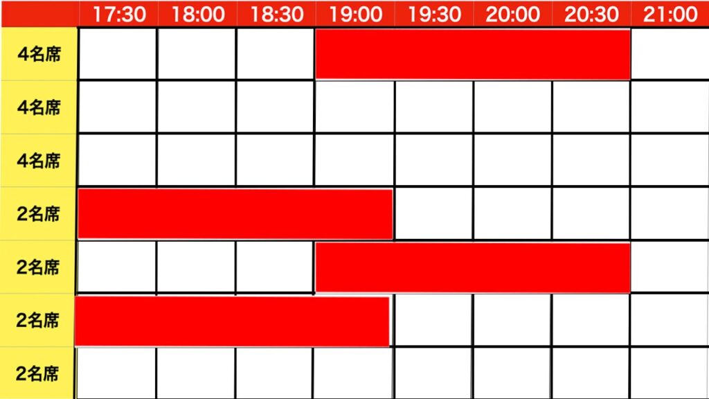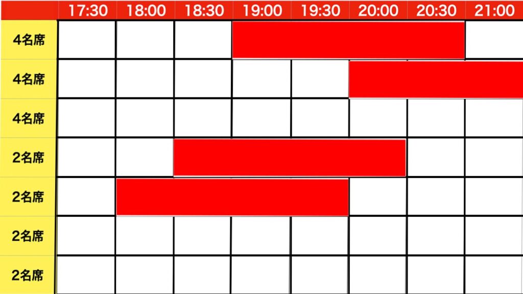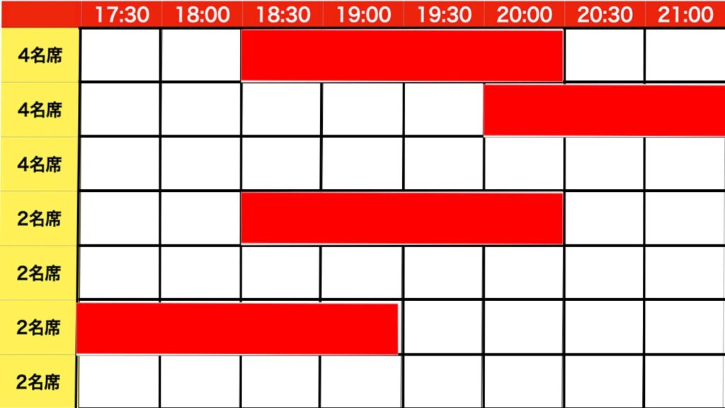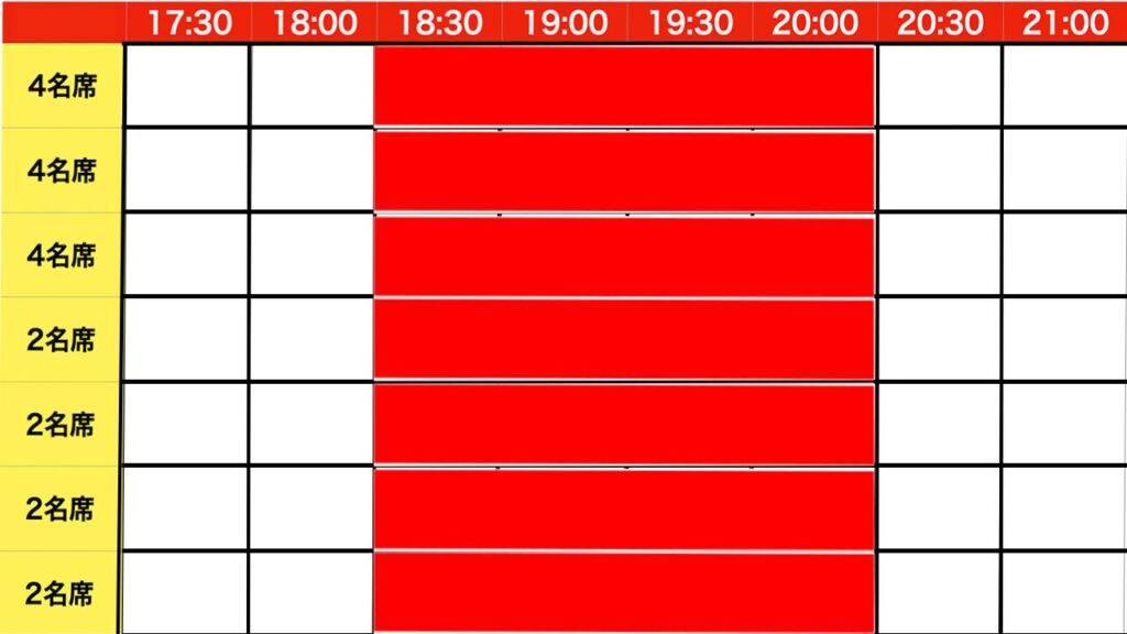17:30〜、18:00〜、18:30〜、19:00〜、19:30〜、20:00〜